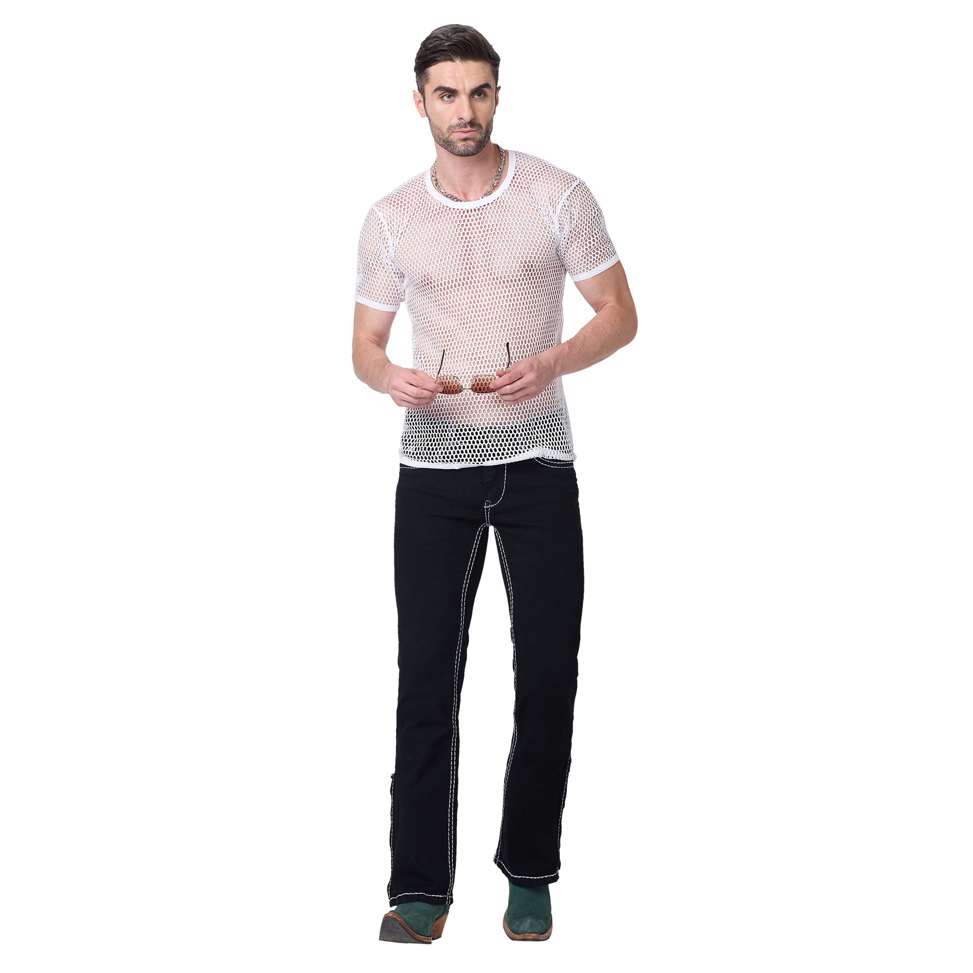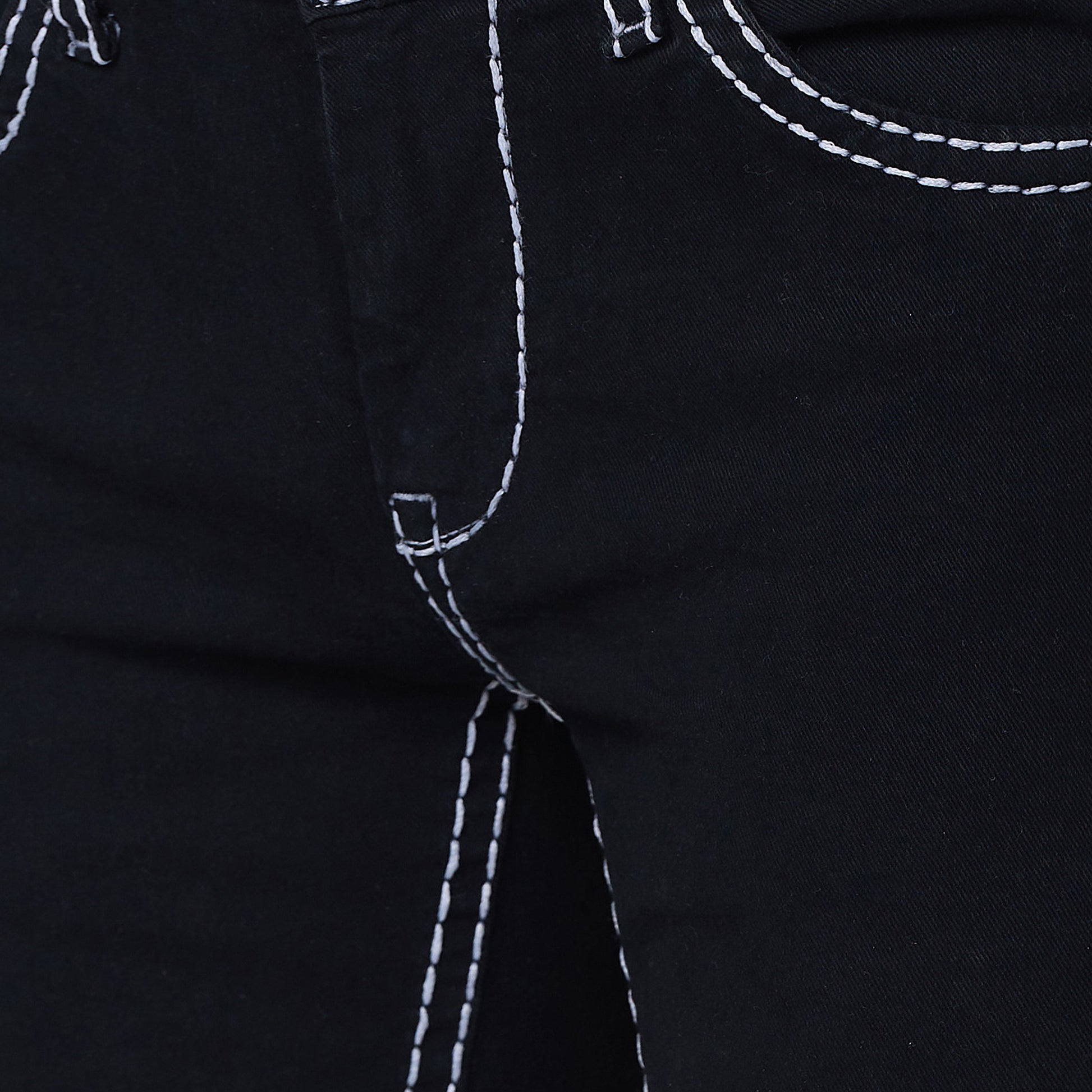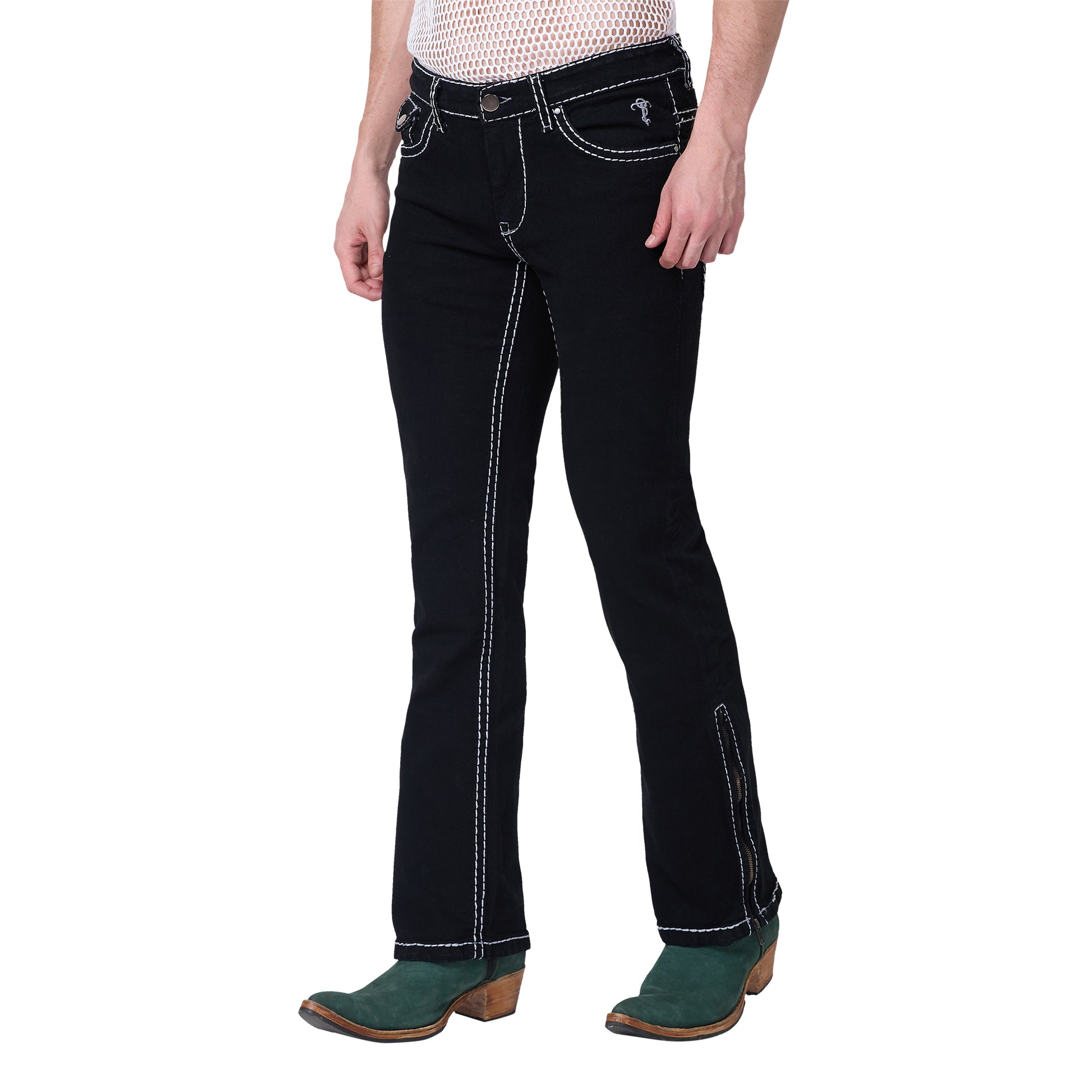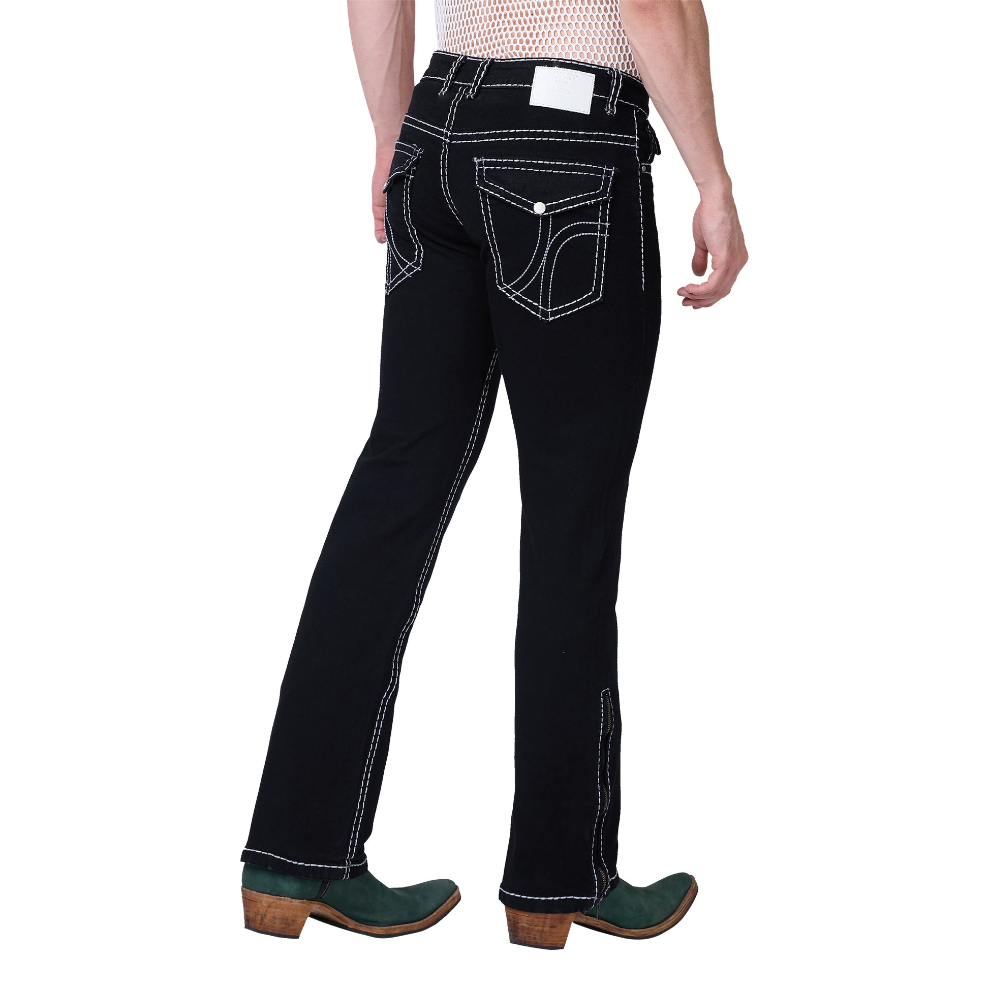 Mens Black Bootcut Slim Fit Jeans Strechable With White Saddle Stitch